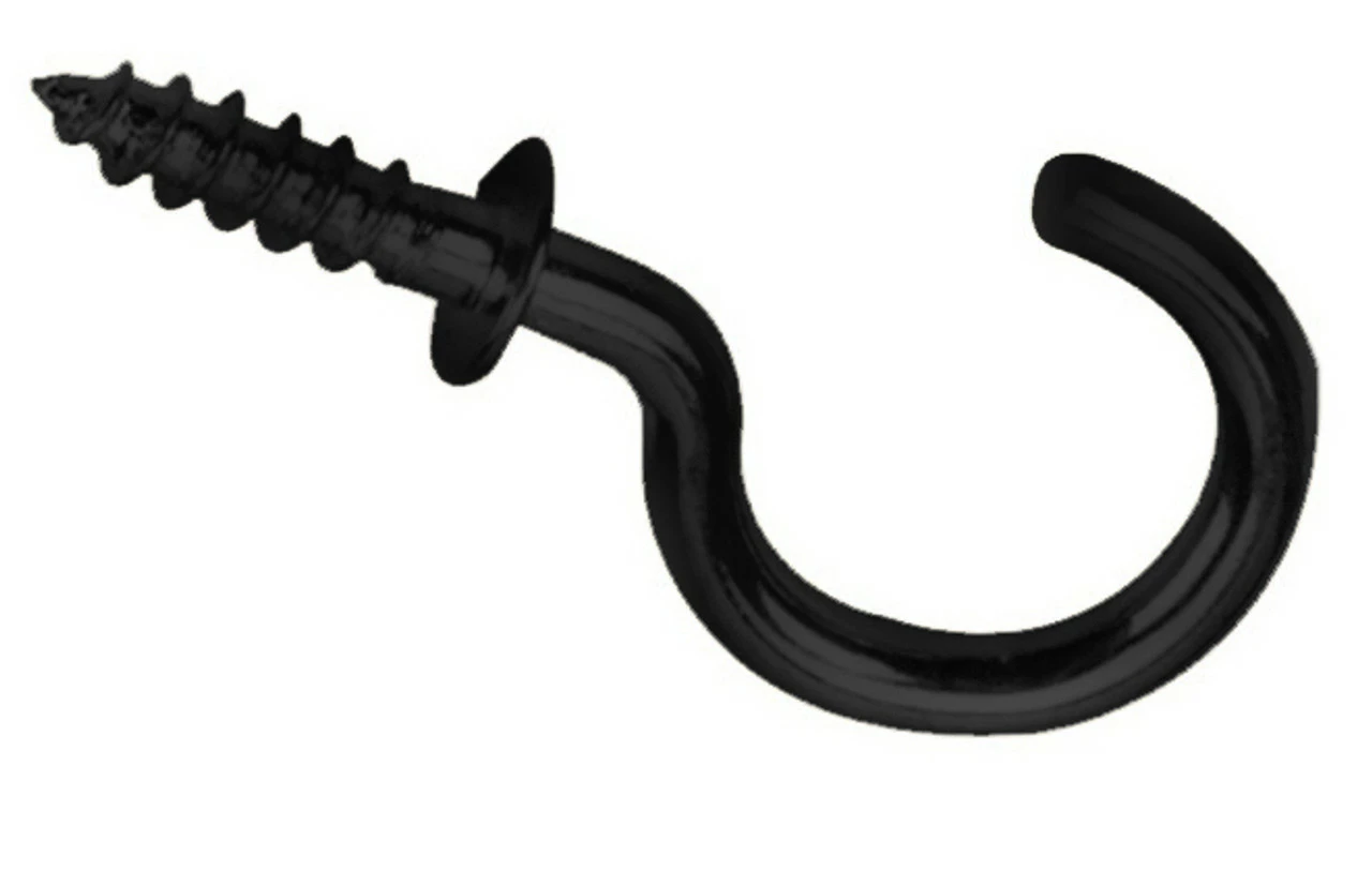 A 1-1/2″ Flat Black Cup Hook – Box of 100 The Hook would be appropriate for a wide range of uses.