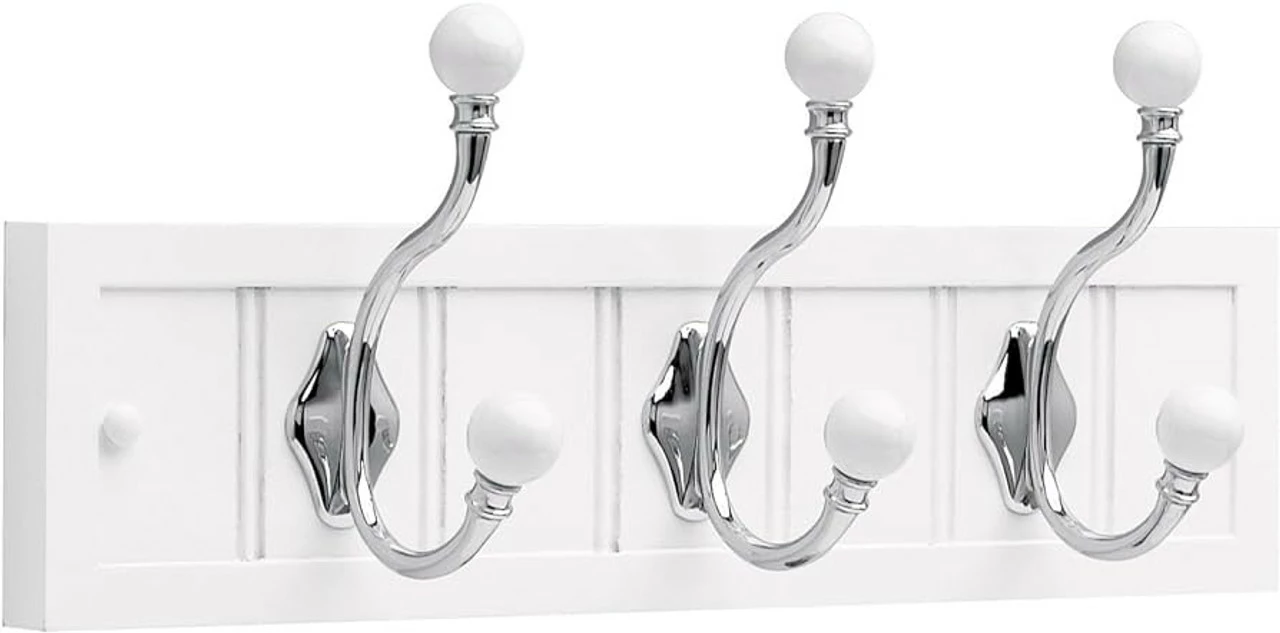 The two tier hooks give space for numerous items to be securely hung at a time while occupying minimal wall space. This is the perfect solution for any foyer, entry way or even a bathroom!