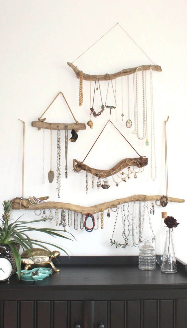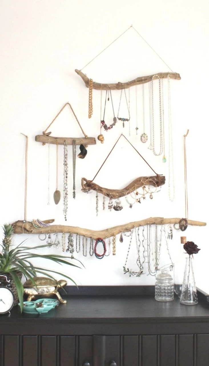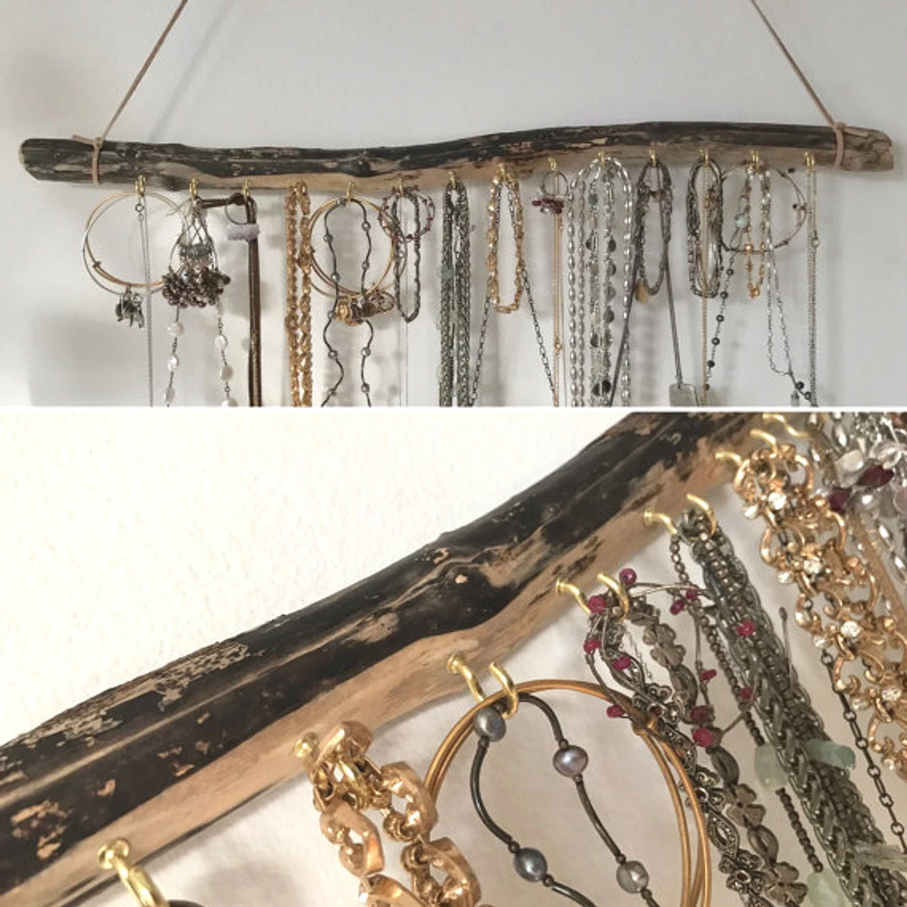 Cup Hooks – Box of 100 Pieces Hook Bright Brass Plating Screw Tip Base This hook would be appropriate for a wide range of uses. Hook is measured from the shoulder to the bottom which equals 5/8″. In the additional images you can see these hooks in use from a customer we are proud to have in Curiographer! This highly rated Etsy shop sells the driftwood jewelry racks pictured as well as other unique items. From their store, “Natural driftwood turned effortless jewelry display and storage. These pieces look beautiful hanging on a wall or hook. These wall mounted displays make for beautiful bohemian necklace organizers. Makes a great gift for her (or you).”