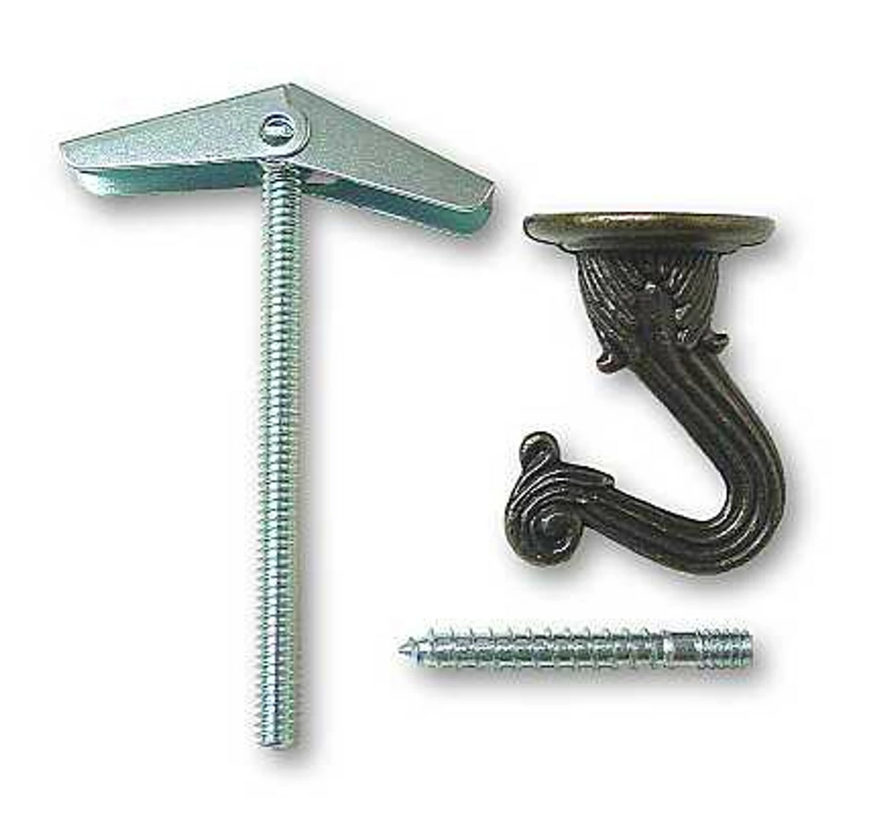 Swag Hooks in Antique Brass has a great look. The 2 hooks both come with hollow wall mounting or a solid surface mounting. Retail packaged, 2 pieces per unit with instructions.