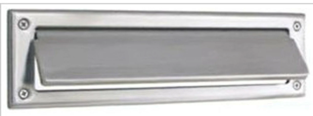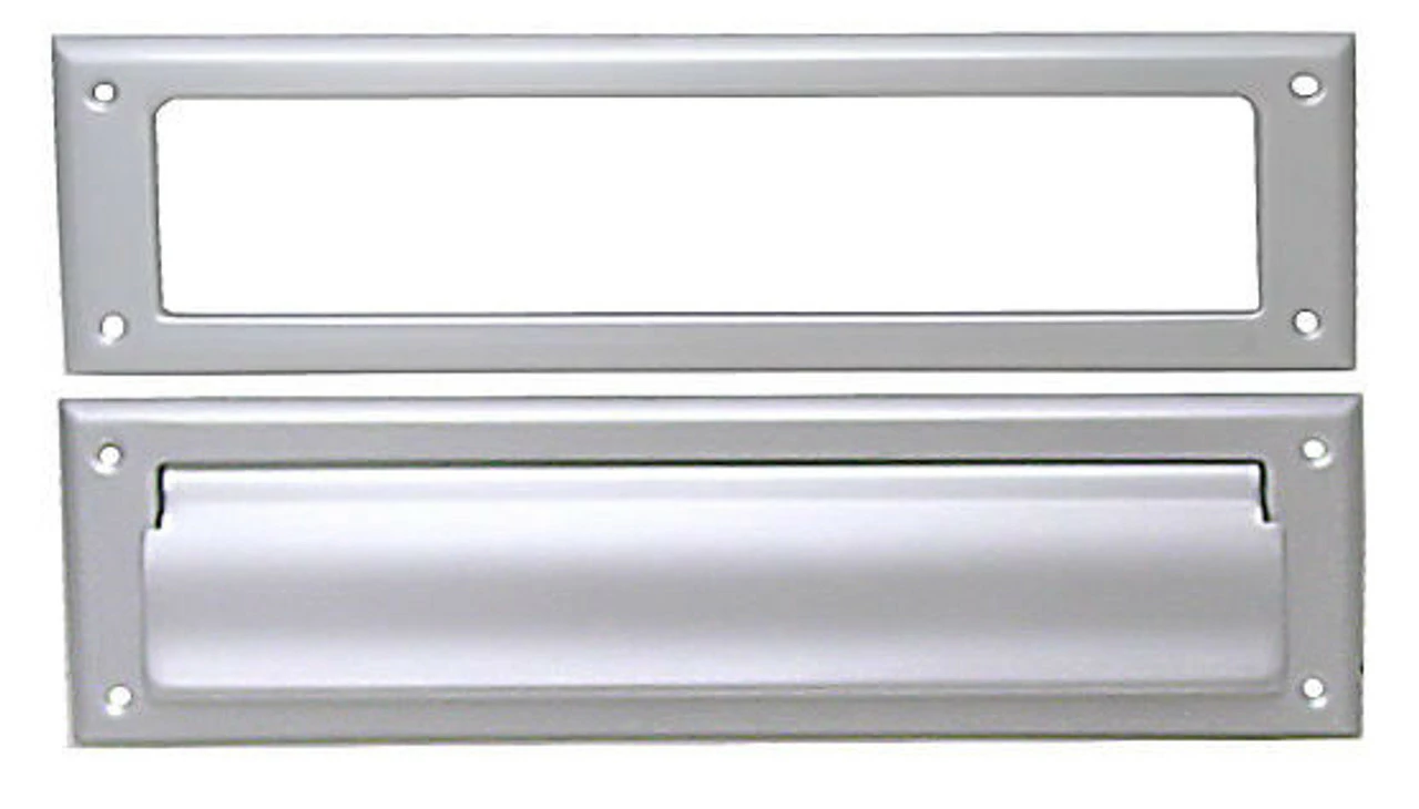 Aluminum mail chute with a satin finish will dress up any door exterior and interior. Spring loaded door closure for a security. Frame size: 13 1/8″ x 3 5/8″ Flap opening: 11″ x 2 3/8″ Comes with mounting hardware. Order stainless steel sleeve AM-5349 for a professional installation.