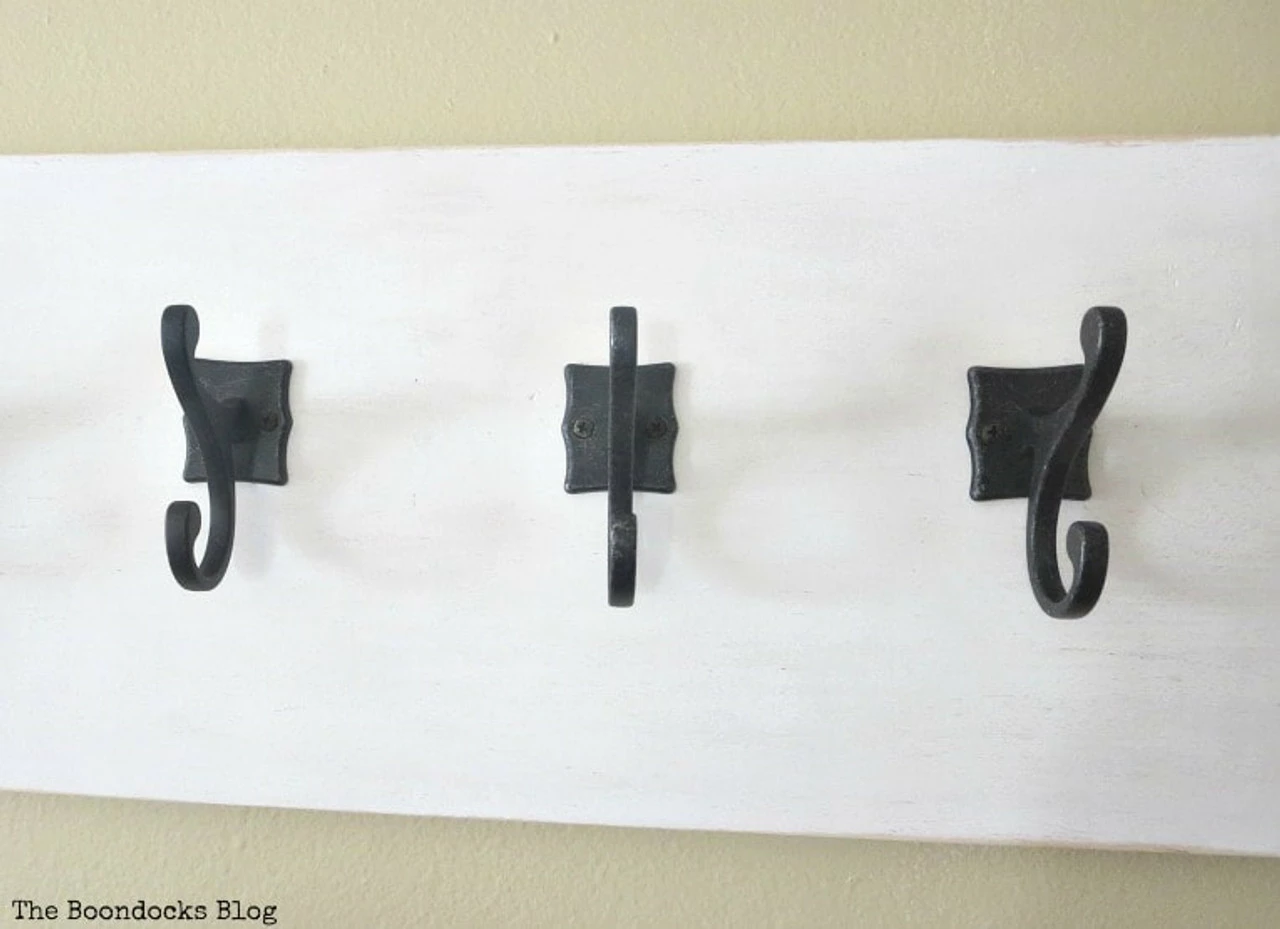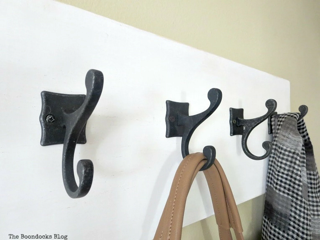 The additional photos of this decorative gunmetal coat hook come from The Boondocks Blog on a lovely coat rack for the entry way. These hooks as you can see in the nicely staged photos! Product #: 111444 Finish: Tumbled Dark Gunmetal