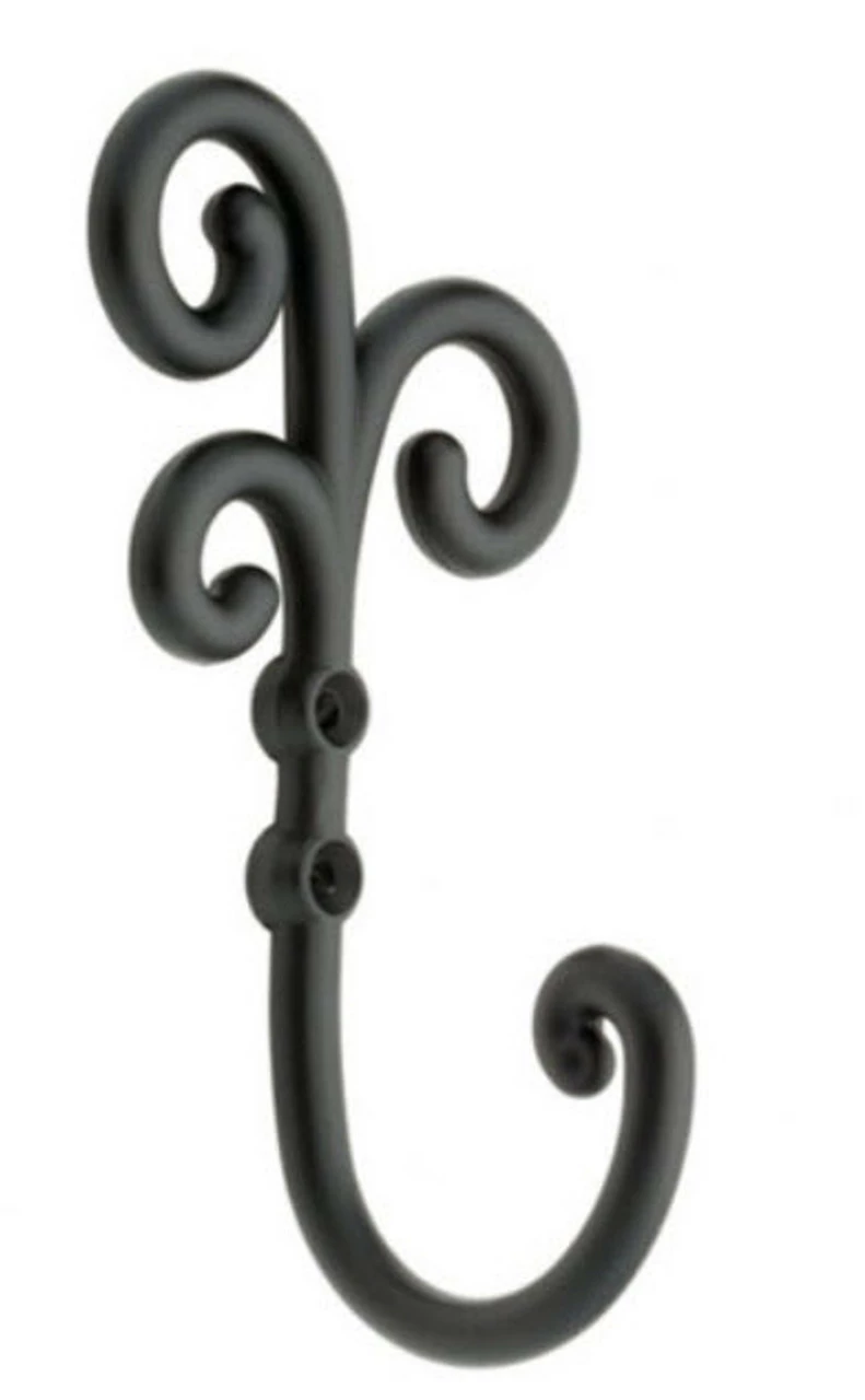 This flat black solid steel hook with counter sunk screw holes presents a decorative pizzazz to foyers, hallways, bathrooms, or anywhere some additional hanging space is needed.