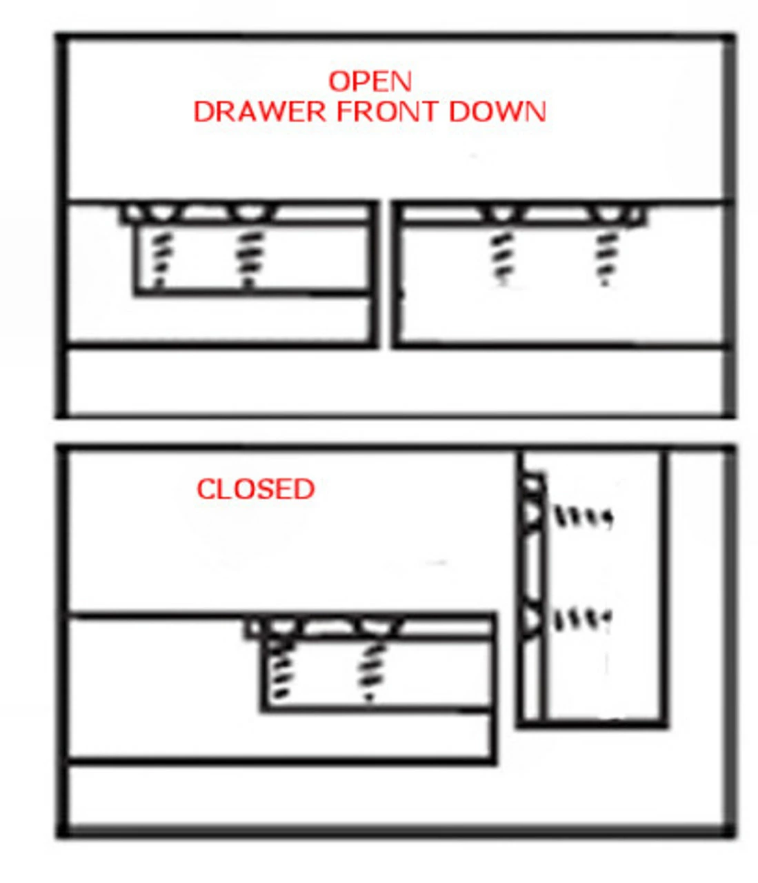 This hinge is most commonly seen on computer desks with a drop-down drawer front where the keyboard drawer pulls out