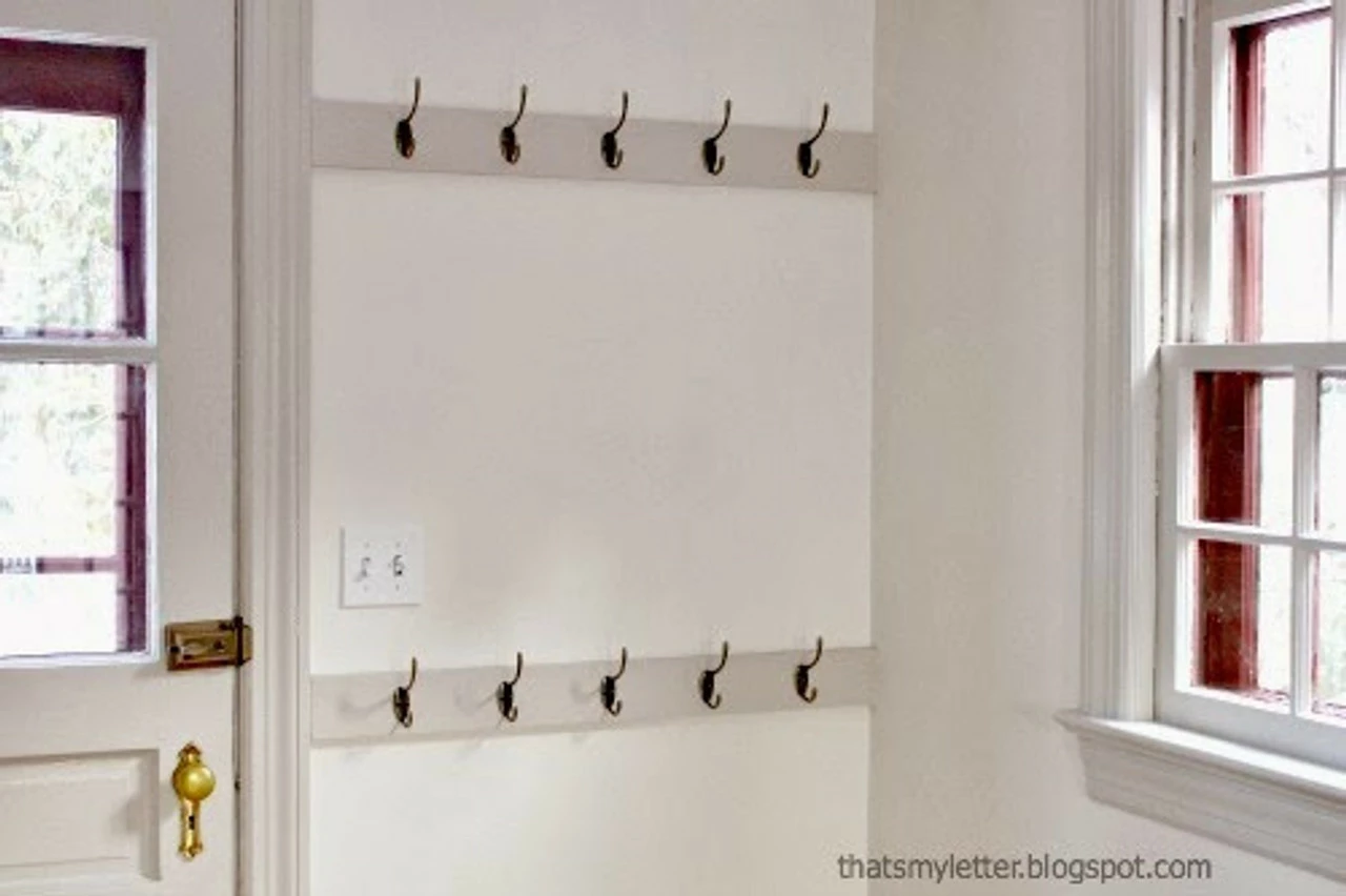 This simple and affordable antique brass die cast hook was recently used on the DIY blog That’s My Letter as you can see in additional images. This hook would be appropriate for a wide range of coat rack styles and wall hangings.