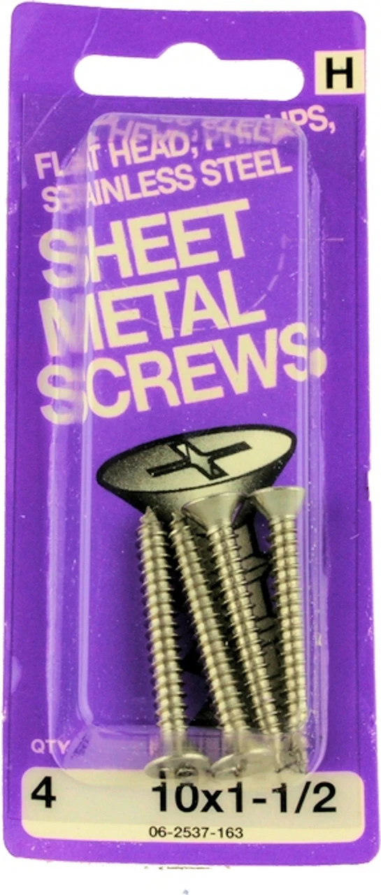 Hillman #10 X 1-1/2″ Flat Head Sheet Metal Screws – 4 Pack H-06-2537-163
