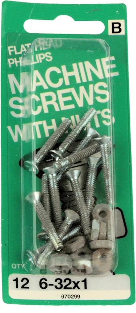 #6-32 x 1″ flat head phillips machine screws with nuts – 12 pack from Hillman Hardware