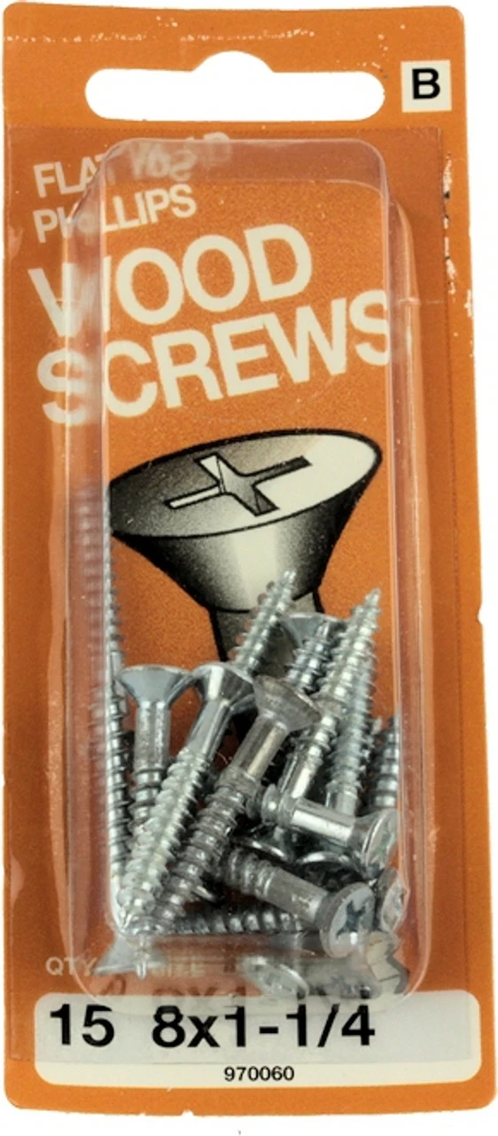 Hillman #8 X 1-1/4″ Flat Head Wood Screws – 15 Pack H-970060