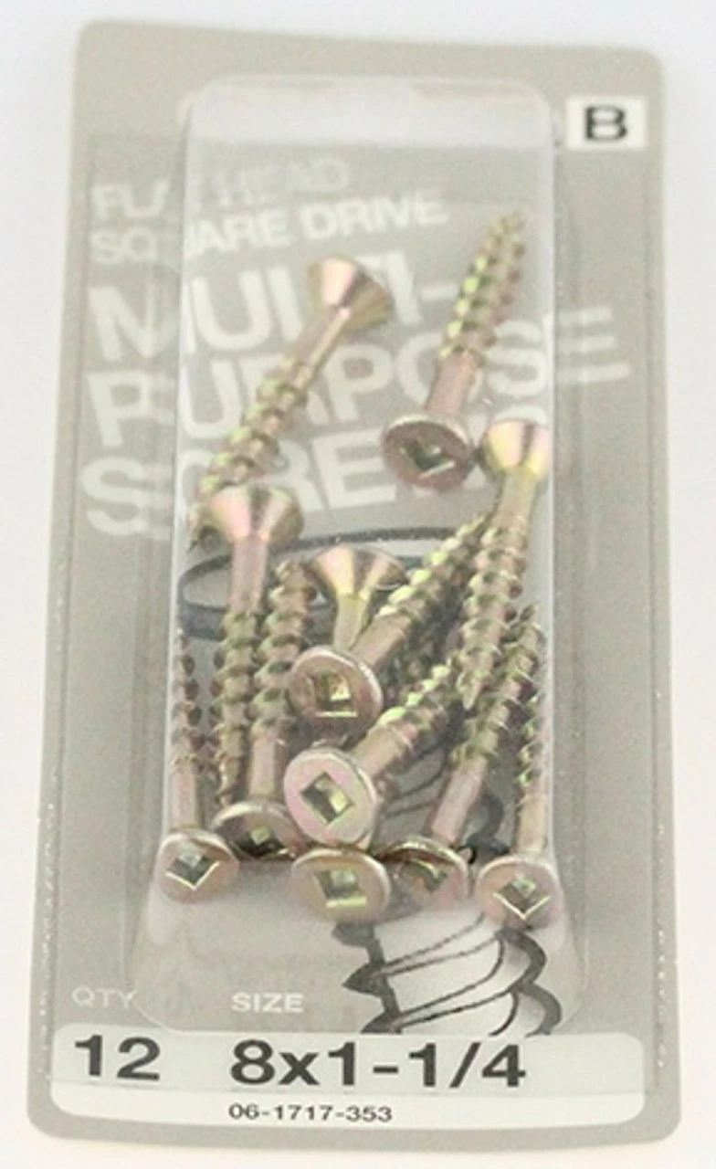 Hillman Flathead, Square Drive Multi-Purpose Screw – 8 X 1 1/4 – 12 Pack H-06-1717-353