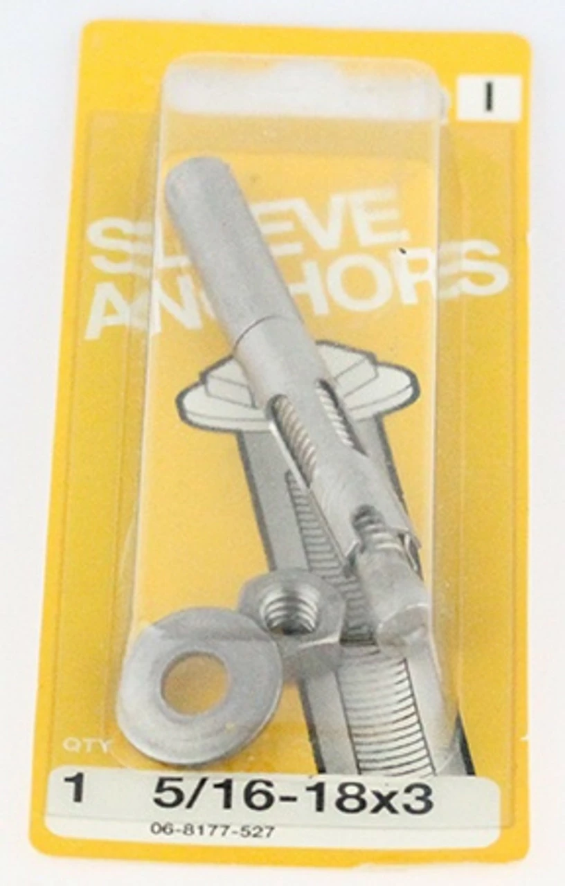 This is a heavy duty sleeve anchor from Hillman Hardware. Sold as seen in the picture as a single. 5/16 – 18×3. Includes washer and nut. Hillman Hardware