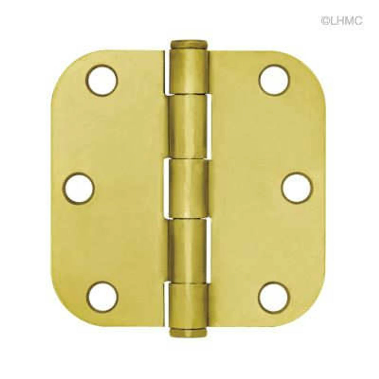 3″ Satin Brass Door Hinge With Round Corners. ail carded with screws and mounting instructions. 1 per package. Classy looking hinge will enhance your other satin brass hardware.