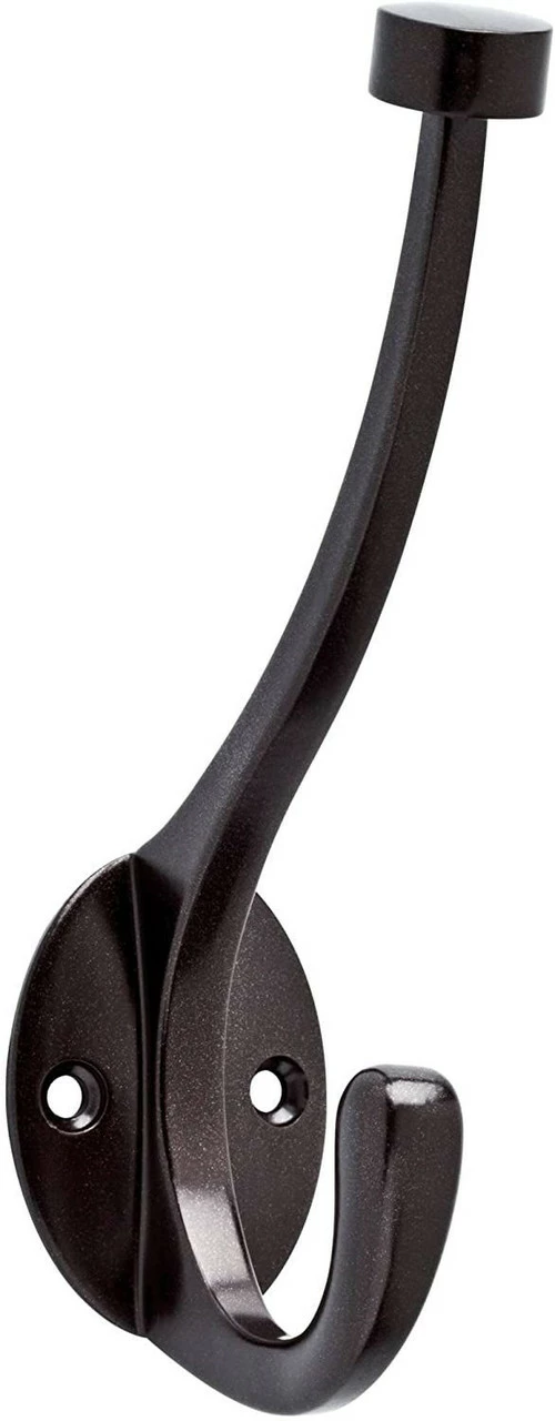 Pilltop two prong coat hook in cocoa bronze finish with mounting screws and instructions. Recommend weight 35 lbs.