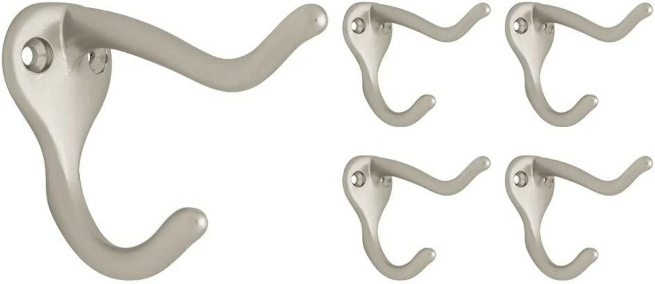 5 Pack 3″ Satin Nickel Shaker Style Coat & Hat Hook Hanger Great for storage of backpacks, robes, towels, coats and more Holds up to 35 lbs. Includes mounting hardware and installation instructions Limited lifetime warranty Quick and easy to install on your own Overall dimensions, when mounted, (HxWxD): 2.28 in. x 1.12 in. x 2.95 in. Liberty Hardware