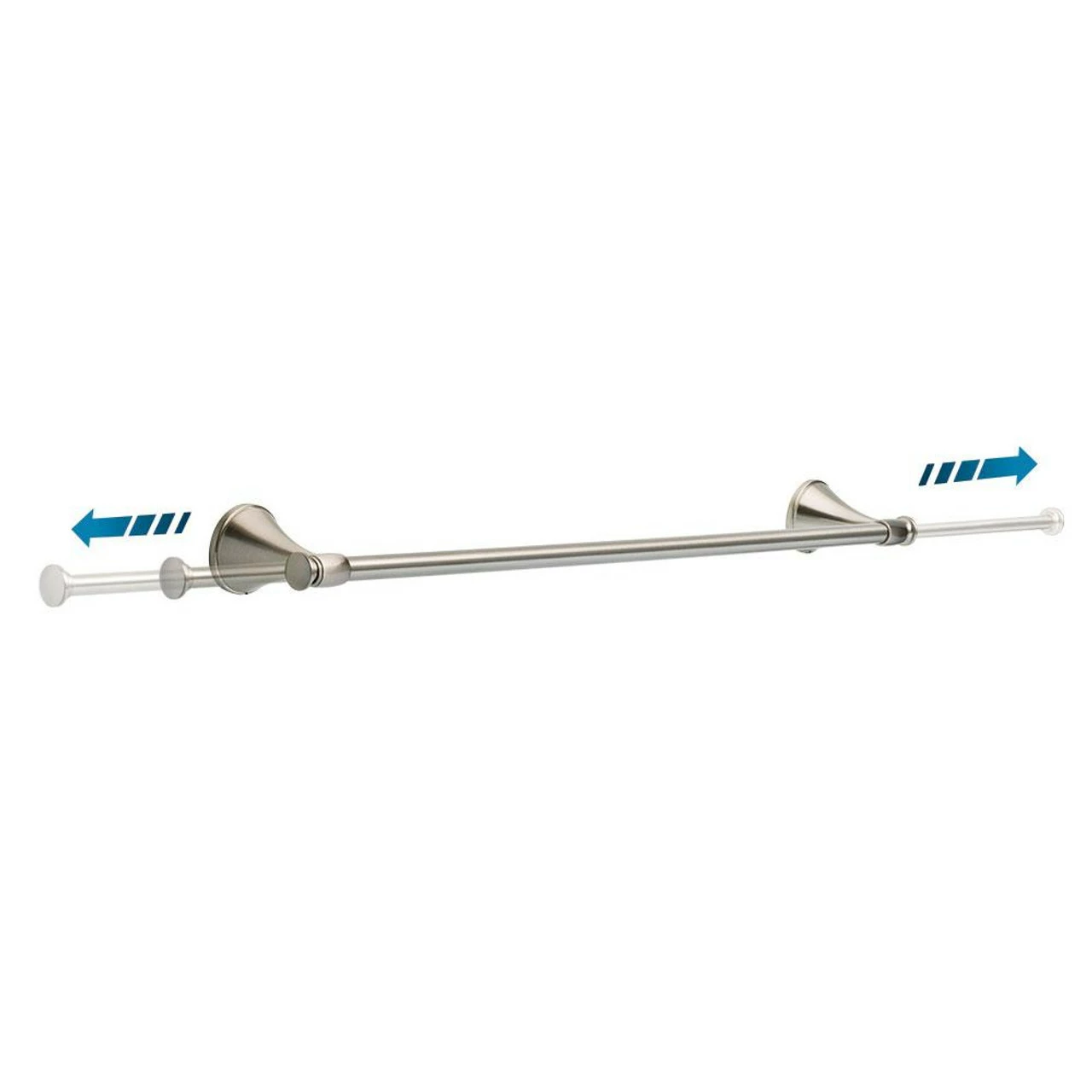 Extend the functionality of your bath hardware with the Accolade Expandable Bath Hardware Collection. The 24 in. towel bar has the casual look of a traditional brushed nickel towel bar but features unique insert ends that pull out and extend when you need it. This provides a more convenient way to dry damp and wet clothing, gloves, shoes, hats and other items that should not tumble dry while also offering decorative or additional towel storage when heavy bath use is expected.