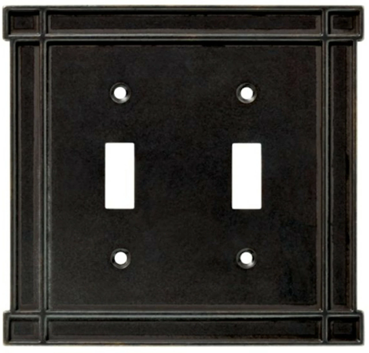 Classic double switch wall plate from Liberty Hardware. We have some nice shots of this switch plate collection in the additional images as used in a rustic kitchen makeover at the popular blog Rusted Roots! In the kitchen makeover she paired these wall plates with the D. Lawless cut glass knobs that have oil rubbed bronze bases which aren’t quite a match, but look pretty good! The specific switch plate you are viewing may not be pictured.