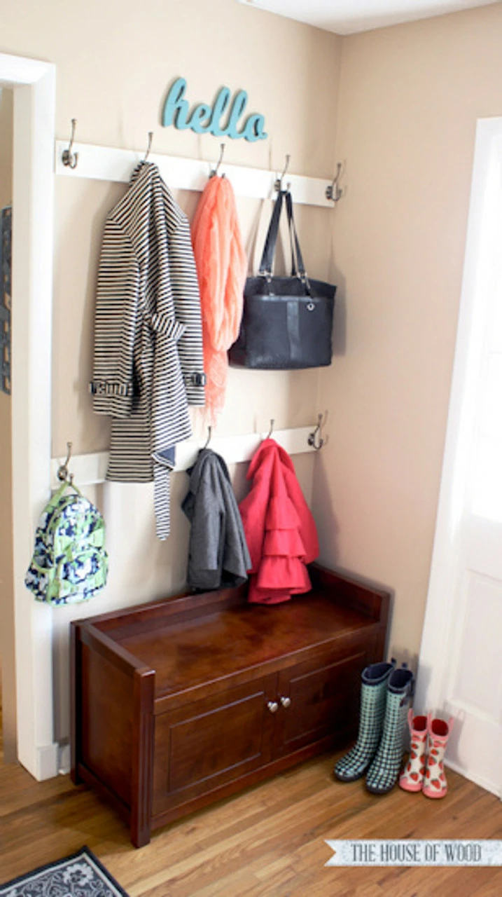 To finish that great look for your room use this antique brass coat hook. This is an attractive addition to any room that will get you the compliments for your completed project. This hook was recently used in a mudroom makeover on the DIY blog The House of Wood as you can see in the images below.