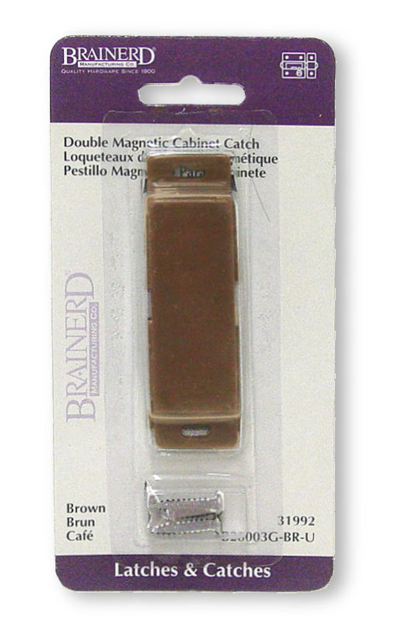Brown Double Magnetic Catch – With Strike Plates – Two 1/2″ Screws and two 1/4″ Screws Securely holds cabinet doors or drawers in place.