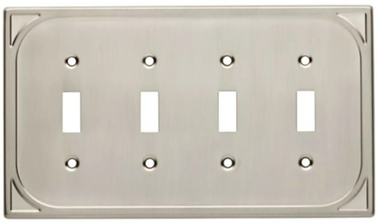 A large quadruple switch wall plate in satin nickel. From the Cambray Collection.