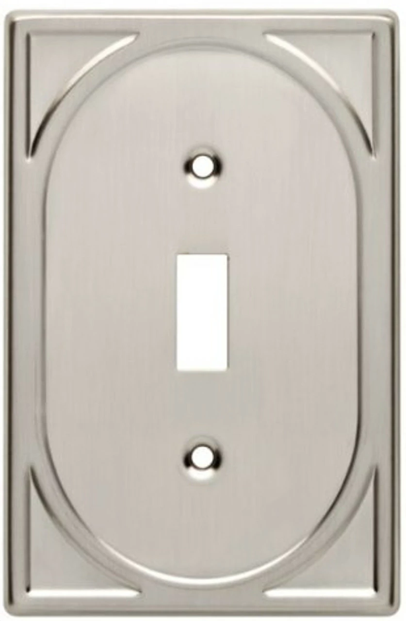A standard single switch wall plate in a stunning satin nickel finish. The comes from the Liberty Hardware Cambray Collection.