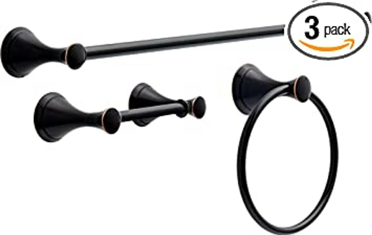 The tapered curves and graceful arcs of the Delta Carlisle collection are reminiscent of classic architectural forms. The Carlisle collection is a perfect fit for any home with its blend of casual and traditional design elements. Includes 24 inch towel bar, toilet paper holder, towel ring