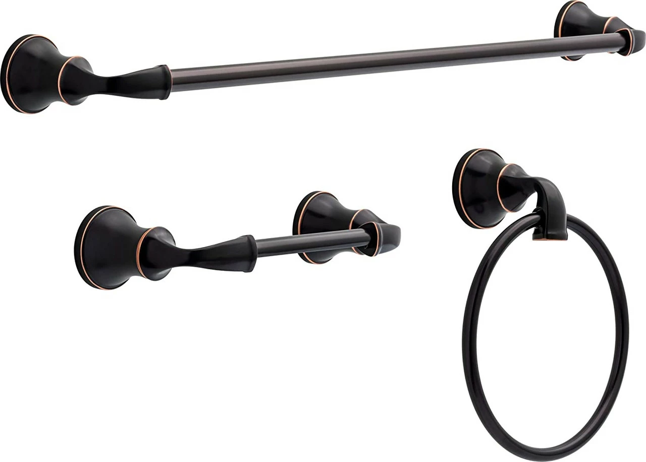 Includes: 24″ Towel Bar, Towel Ring, Toilet Paper Holder