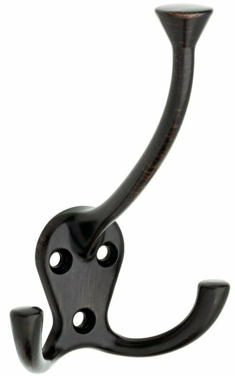 Traditional style three prong coat and hat hook in a venetian bronze finish.