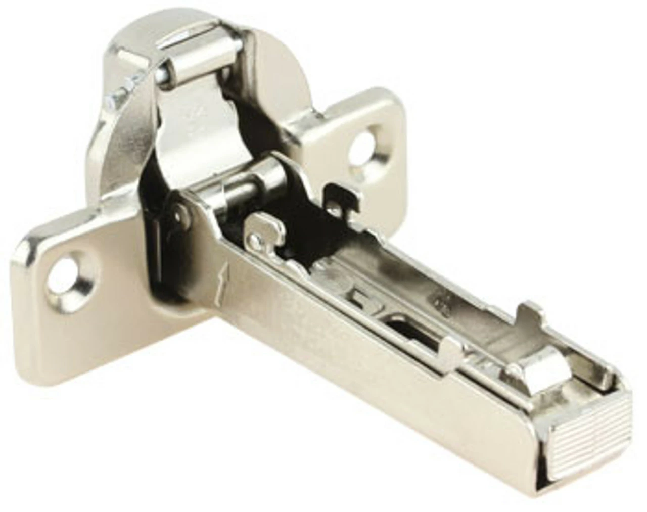Liberty, 110 degree opening Easy-Clip concealed hinge system. This euro hinge is nickel plated steel and is self-closing. This is an overlay hinge with a 00 crank. Use any Liberty Hardware Easy Clip mounting plate with this hinge. “0”mm plate will give a full overlay. Other mounting plates will reduce the overlay by the same amount as their thickness. So, a 2mm plate will cause the door to overlay the frame by 2mm less than a 0mm plate.