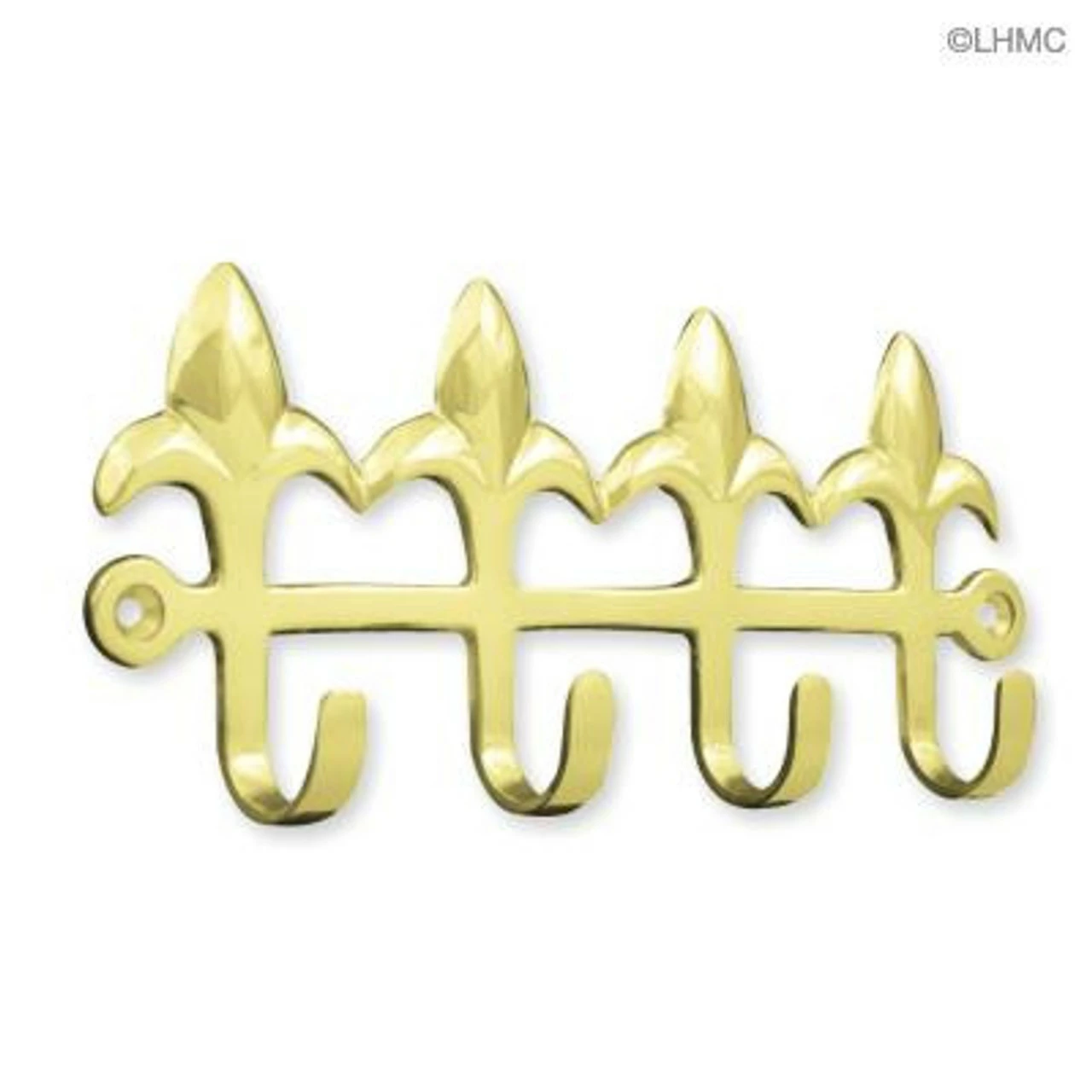 Key Hook – Fleur De Lis polished and lacquer solid brass 4 hook. Comes with mounting hardware. Liberty Hardware Product