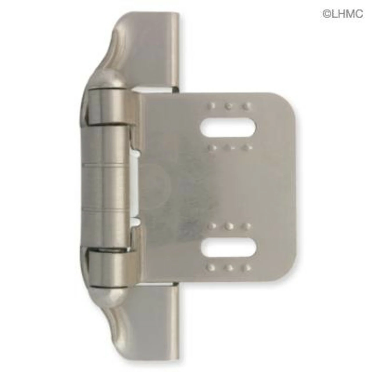 Hinge, 1/4″ Overlay Semi-Wrap, 1 Pair Per Pkg Screws included. Self Closing Best Match for Satin Nickel and Brushed Stainless Steel Hardware