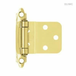 Surface Mount Hinge – 3/8″ inset – semi concealed, self-closing – brass plated. Comes with screws and bumpers. Priced in pairs.