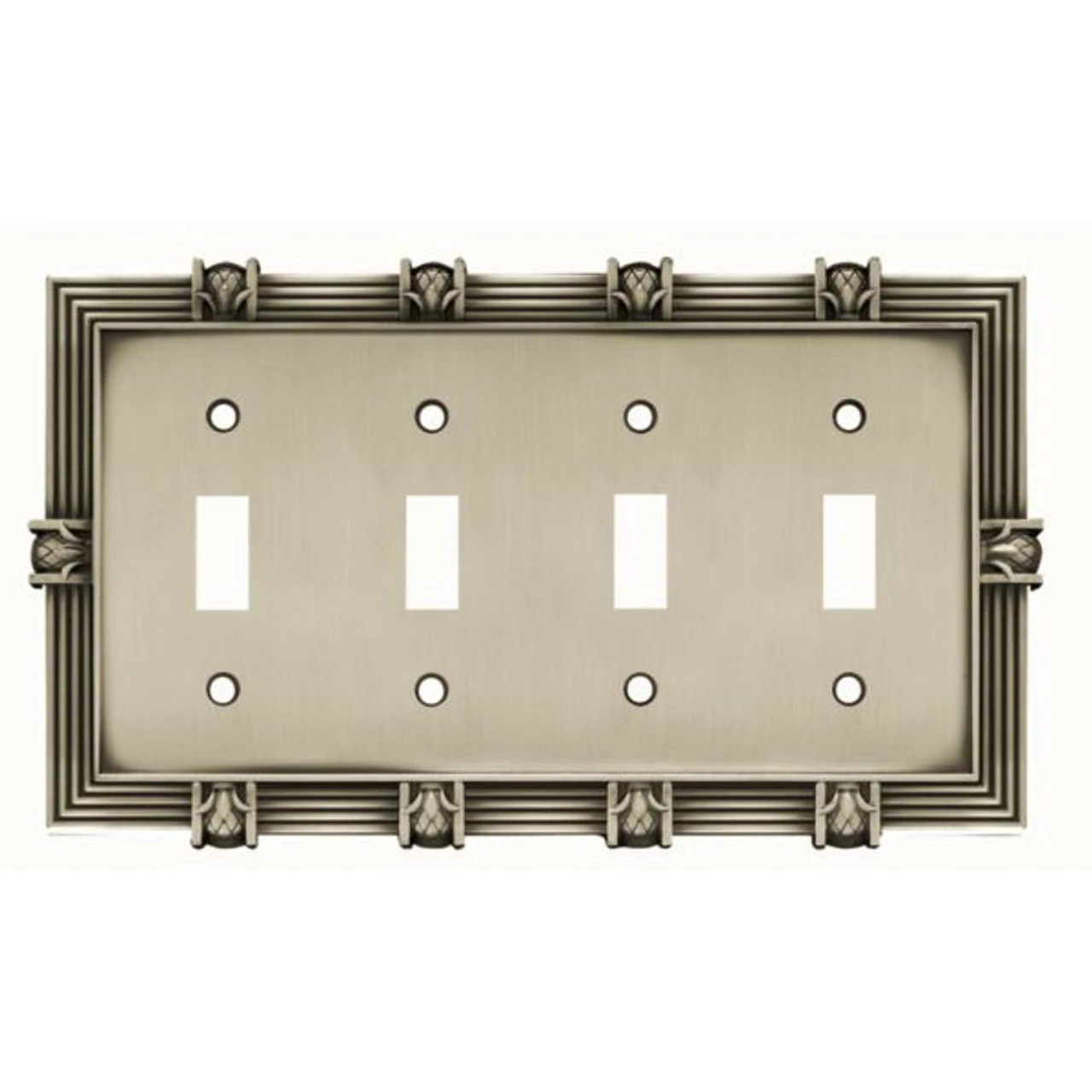 Pineapple quad switch plate in brushed satin pewter