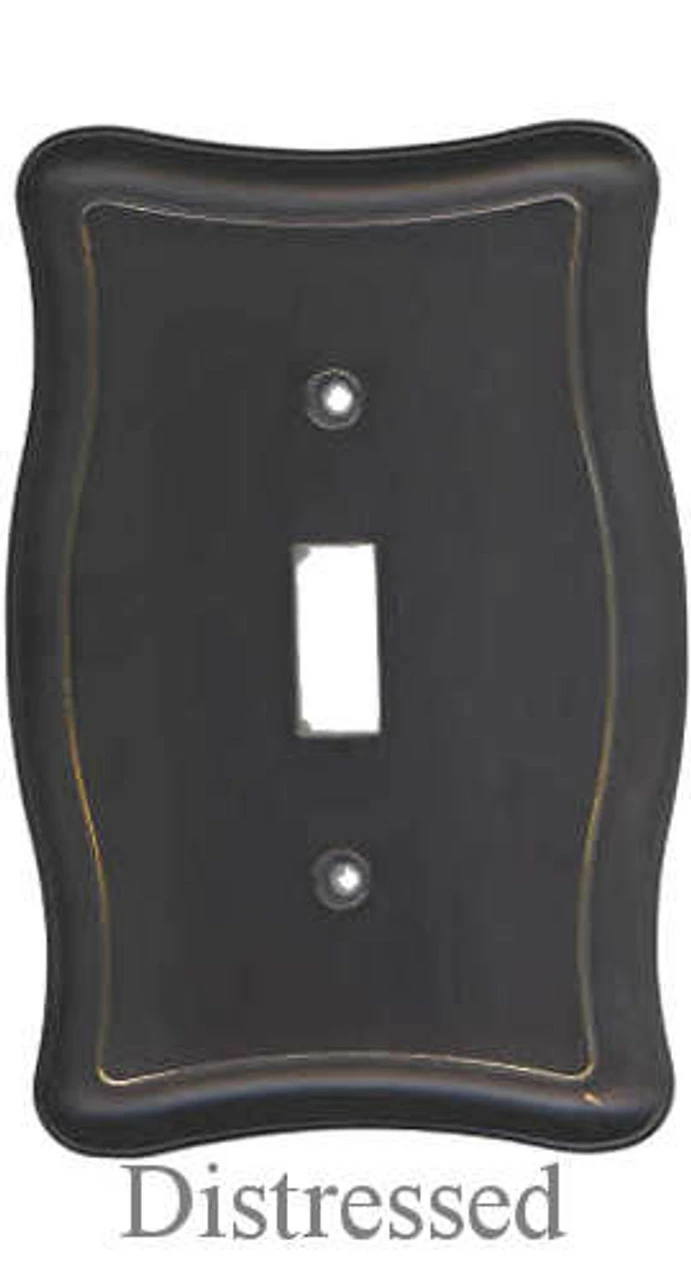 Rich Oil Rubbed Bronze Wall Plate Single Switch Plate Cover. Colonial Style switch plate for a single toggle switch. This heavy cast metal switch plate will be a perfect tie-in with those new oil rubbed bronze kitchen and bath fixtures, knobs and pulls.