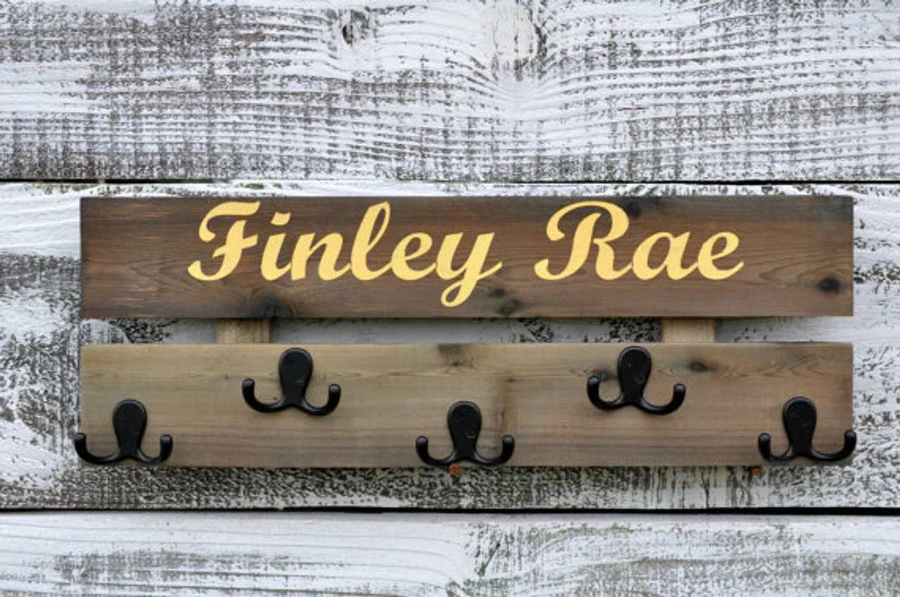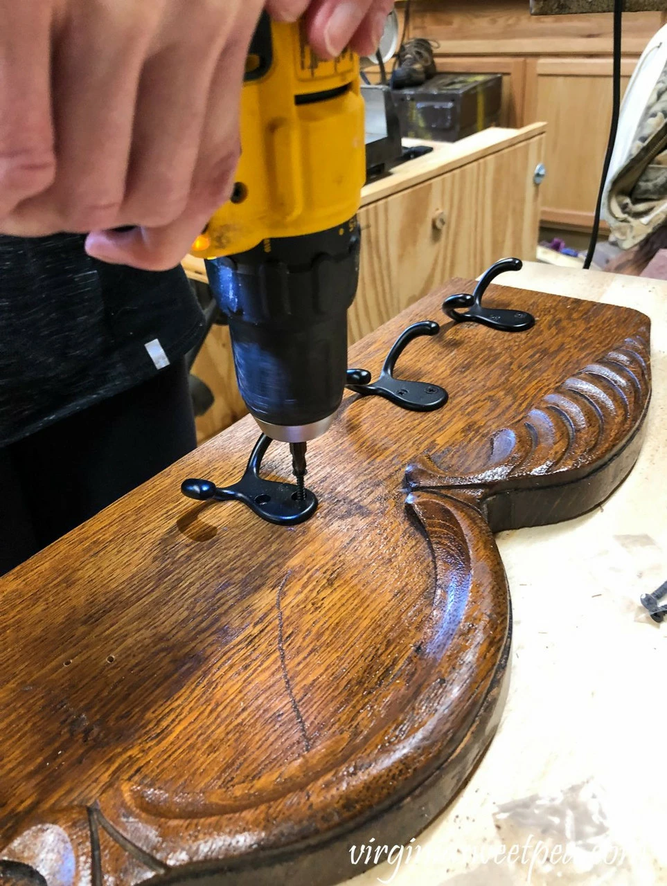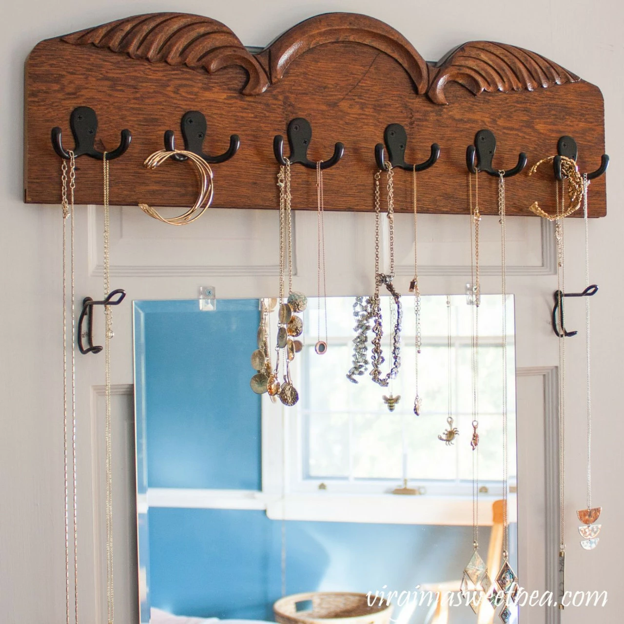 Simple but elegant matte black epoxy finish double pronged hook. This small two pronged hook is perfect for a variety of ideas. In additional images you can see this hook used very creatively in a post about making your own pegboard organizer at Addicted 2 DIY. We’ve a few more nice shots from customer and Etsy seller Reclaimed Oregon. They are very highly rated and sell custom wedding and home decor so give them a look! And used again on the nice refurbishing and DIY blog My Repurposed Life on a cabinet door coffee mug rack.
