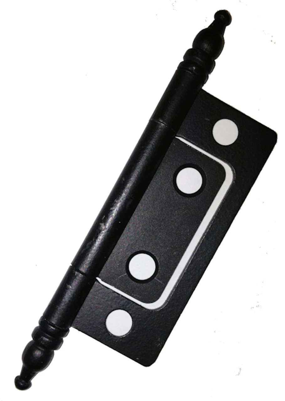 Non-mortise finial hinge – Steel Hinge – Wrought Iron Flat Black- Finials extend 3/8″ on each end.