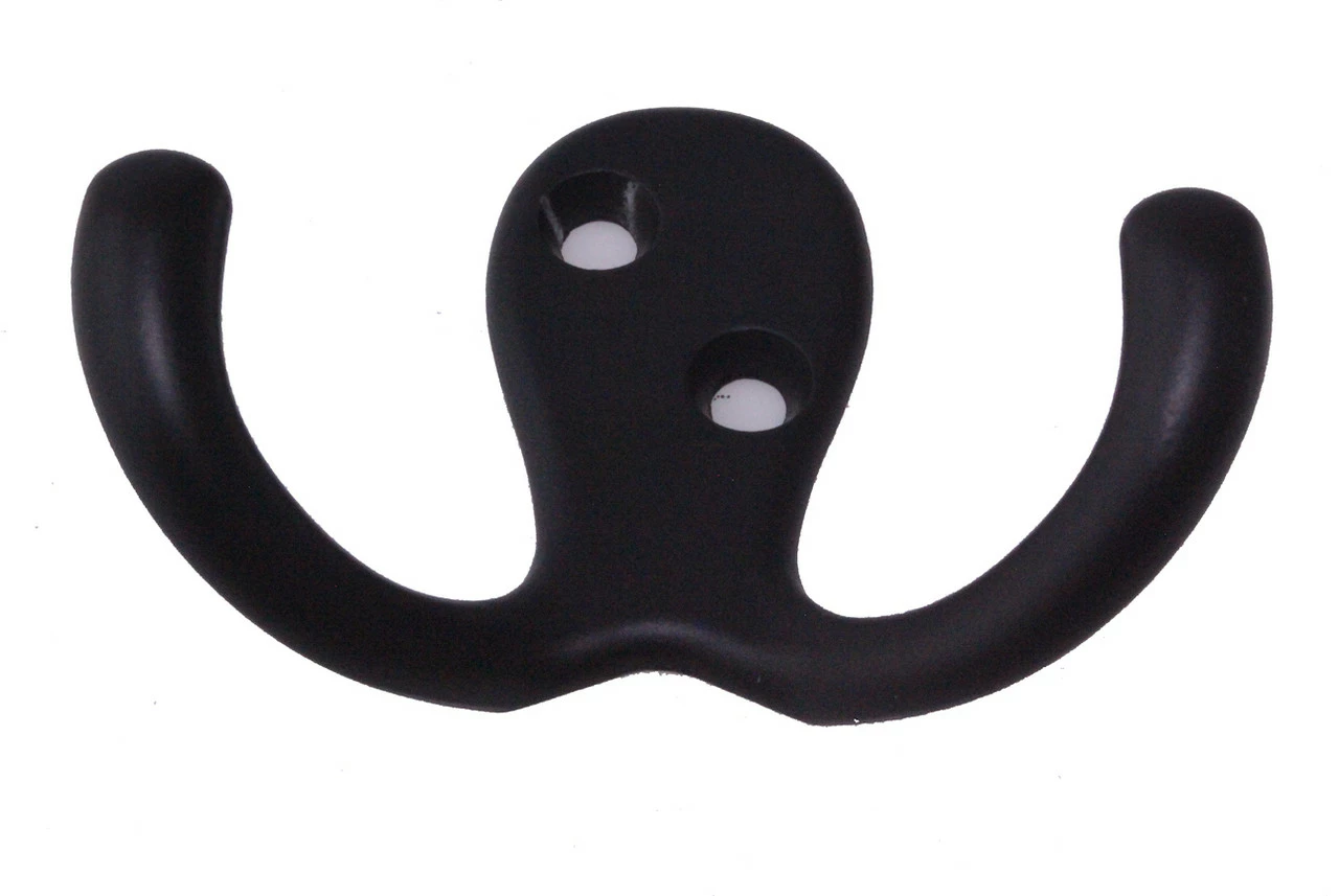 Simple but elegant oil bronze finished double pronged hook.