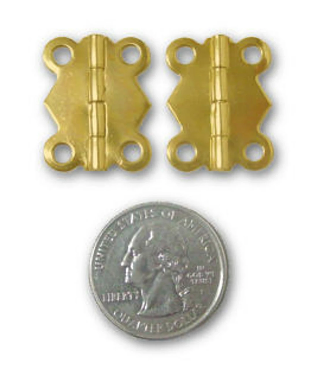 Pair (2) Hinges 15/16″x 3/4″ (24X19Mm) Polished brass Finish. Small hinge for that small project. Perfect for jewelry boxes and small chests. About the size of a quarter.