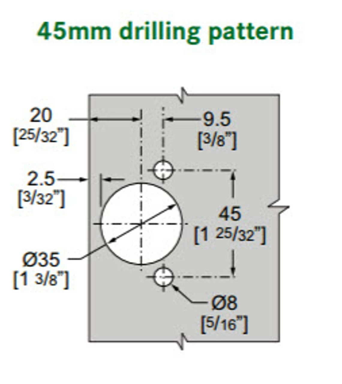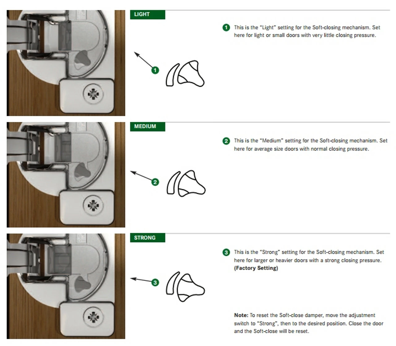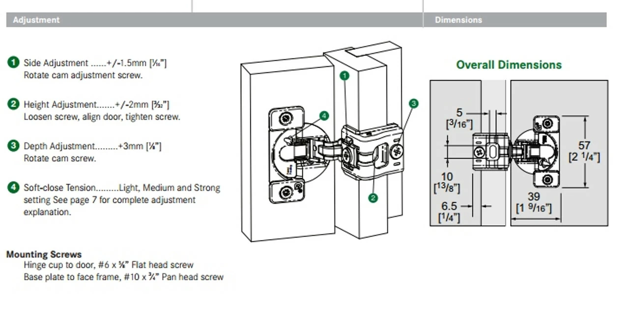 3 dimensional adjustment – cam side & depth adjustment, height adjustment at mounting screw