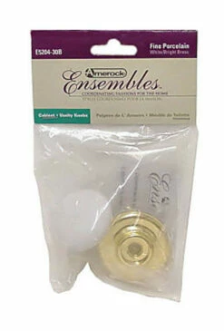 Amerock 1-3/8″ Ensembles Porcelain Knob White With Bright Brass