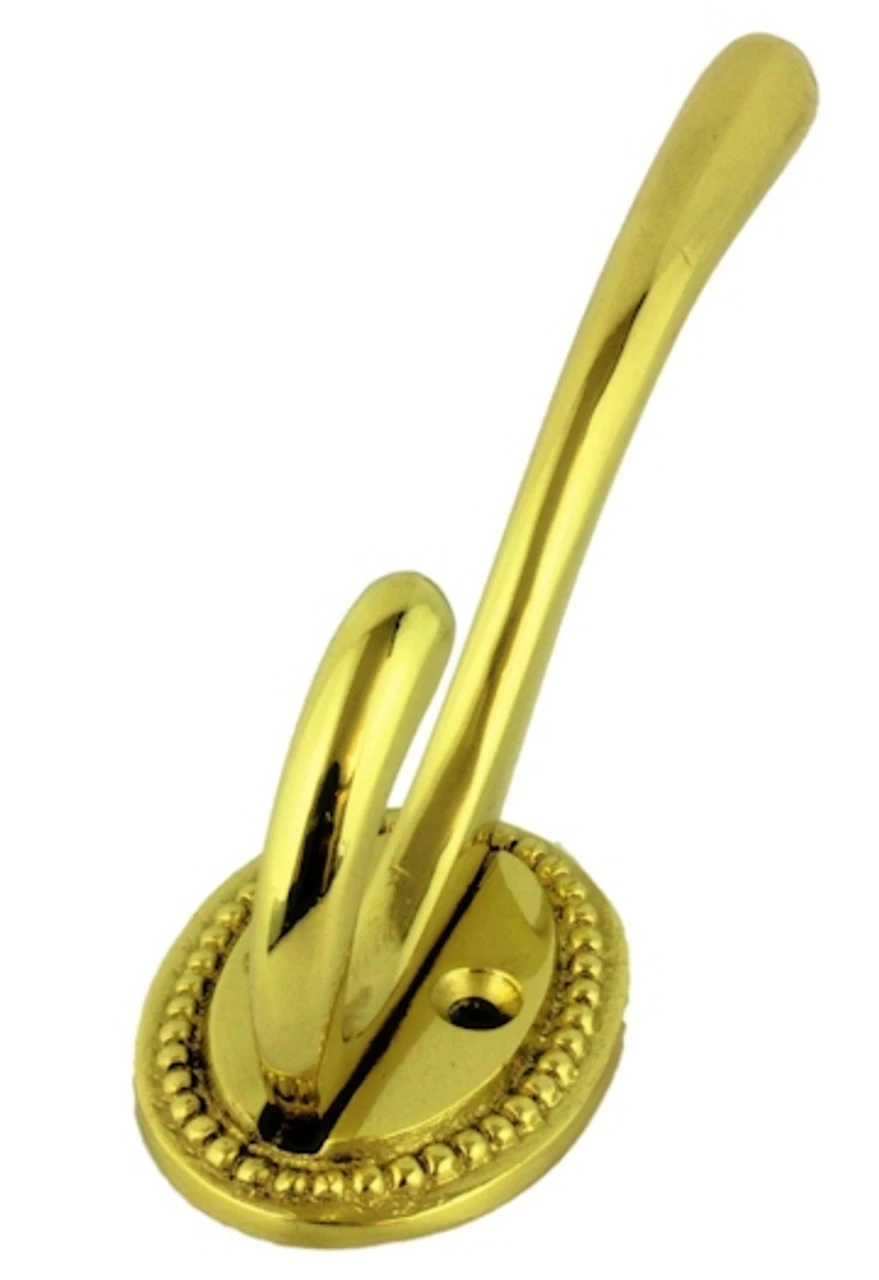Coat hook with beaded edge in solid brass. This comes with screws for mounting.
